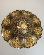 Fruit container 003...円型で奥行きがあり、立体的な勲章のような模様と花の形が特徴です。美しいデザインは、食卓を華やかに彩り、特別な場面や日常使いにも最適です。高級感あふれる仕上げは、どんなインテリアにも調和します。